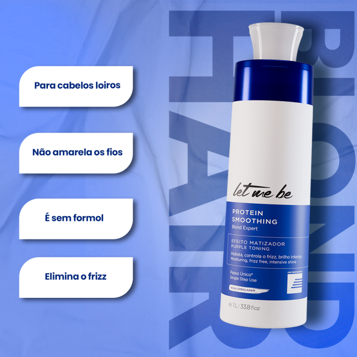 Ideal for those looking for 100% smoothed hair, with softness and intense shine, without frizz and volume. Its formula is developed with high technology that combats the aging of the hair fiber in a single application step, eliminating the need for pre-washing with anti-residue shampoo. Specifically for blonde hair, it contains pigment that will neutralize yellowing.